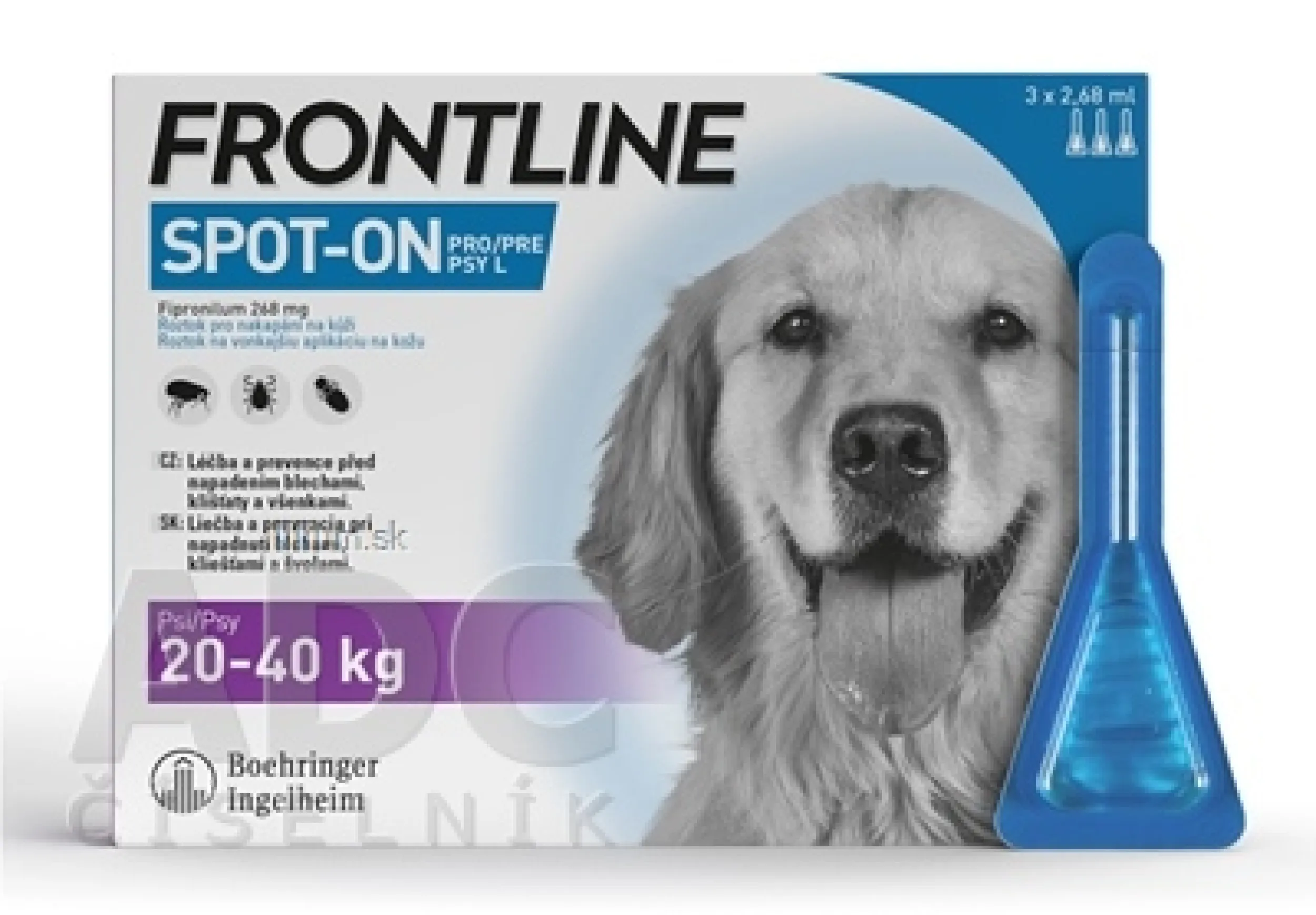 roztok na kožu proti kliešťom, blchám a švolám, v pipete, psy 20-40 kg, 3x2,68 ml