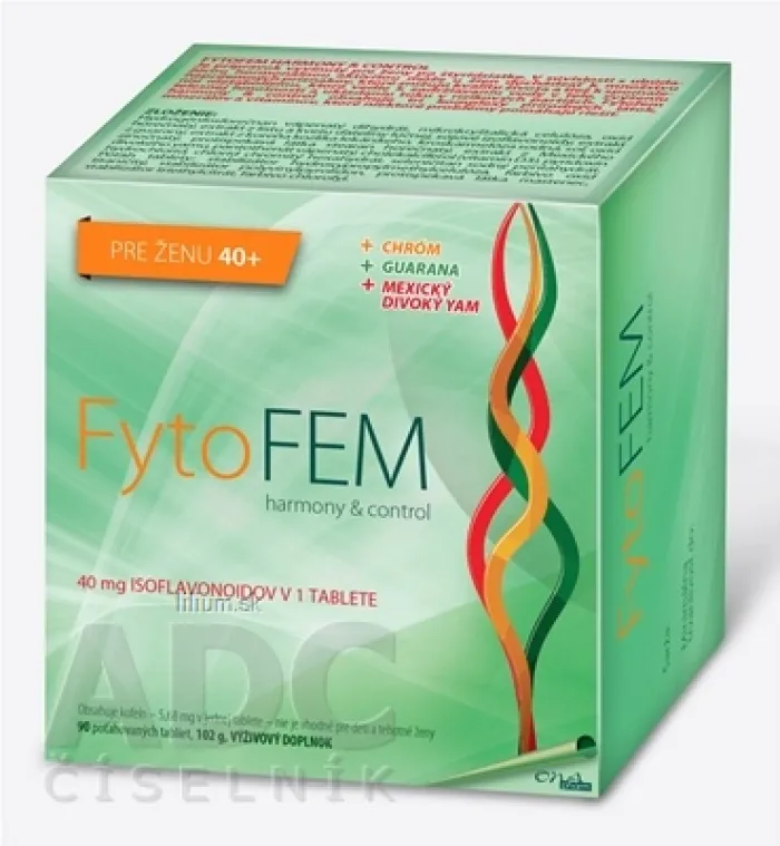 Výživový doplnok. Prípravok určený pre ženy po štyridsiatke. Fytofem obsahuje tri komplexy prírodných látok, minerálov a vitamínov.