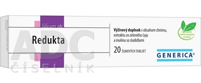 Výživový doplnok GENERICA Redukta s obsahom chrómu, extraktu zo zeleného čaju a inulínu so sladidlami.