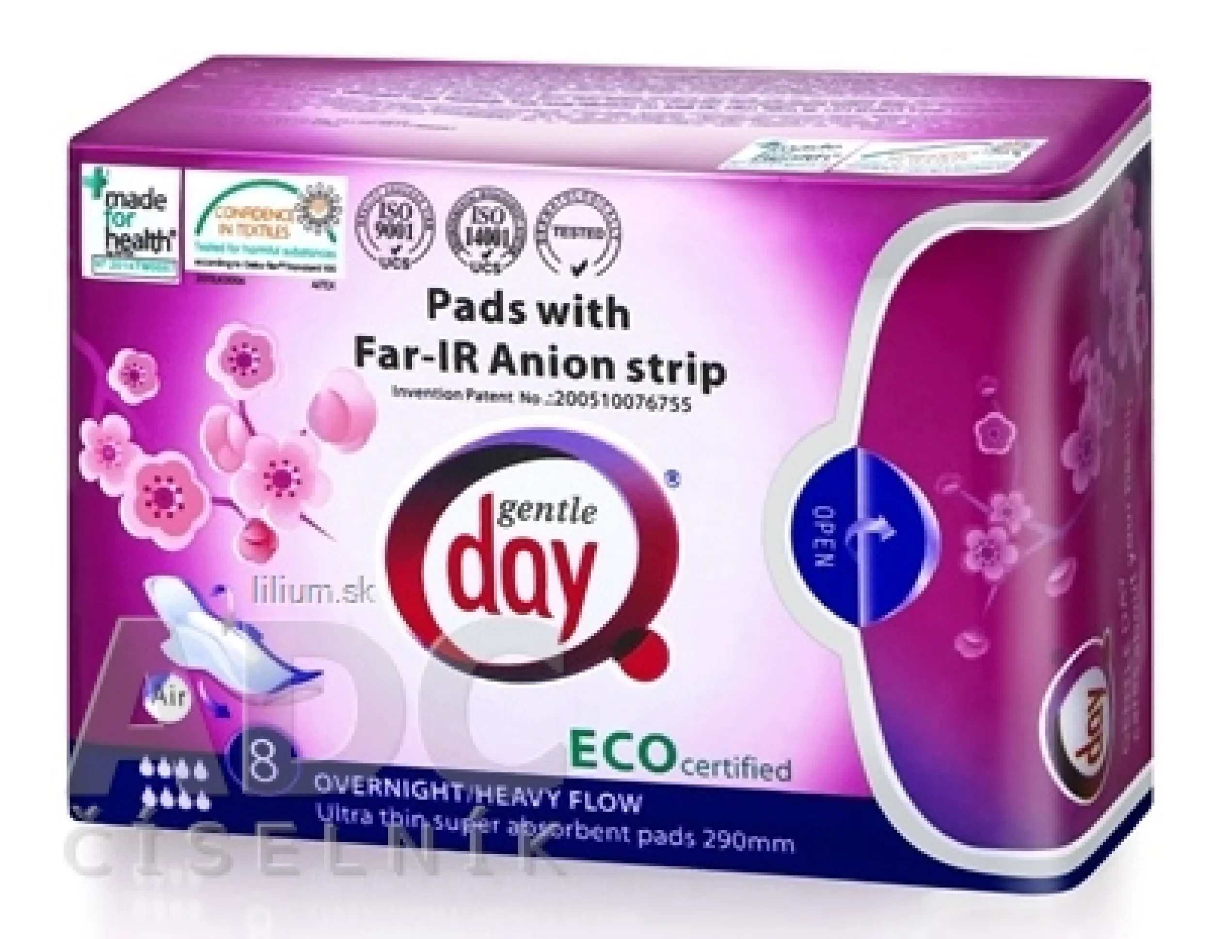 Balenie obsahuje 8 ks bavlnených aniónových vložiek dĺžky 29 cm na nočné použitie alebo počas silnej menštruácie.