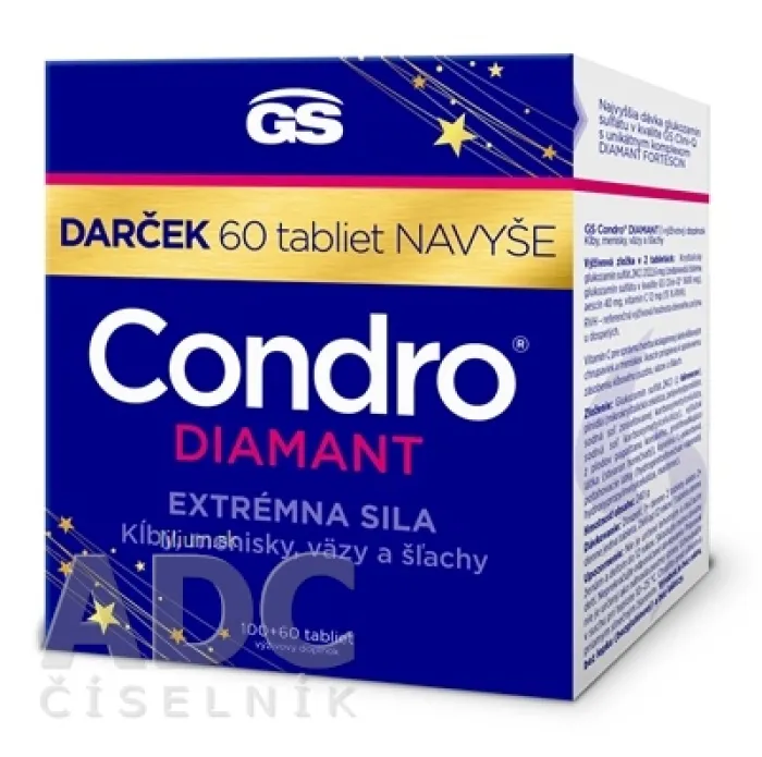Zloženie v 1 tablete: Kryštalický glukozamín sulfát.2KCl 1061,3 mg (zodpovedá čistému glukozamín sulfátu v kvalite GS Clini-Q® 800 mg), aescín 20 mg, vitamín C 6 mg (7,5 % RVH).