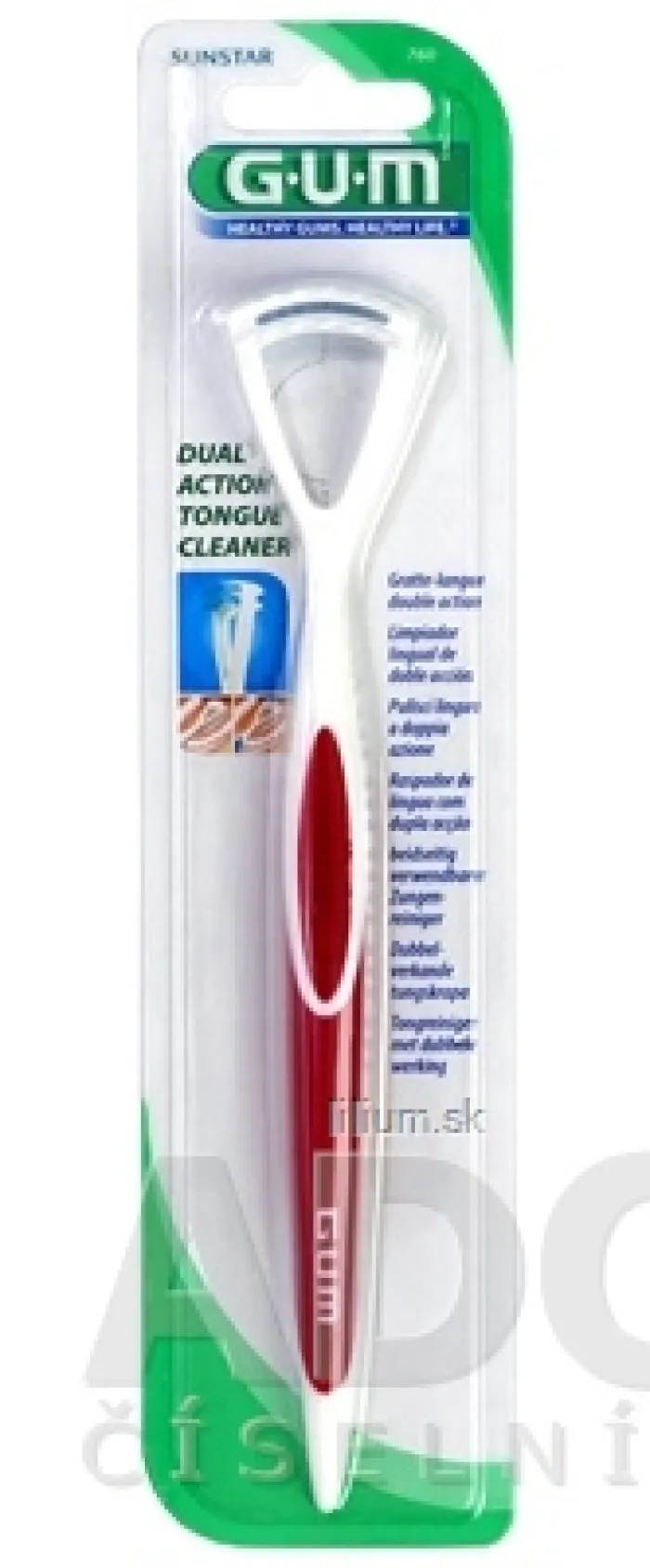 Plastová škrabka na čistenie jazyka s lamelami, veľmi jemná a účinná.
