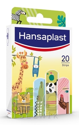 Zdravotnícka pomôcka. Detské náplasti s rôznymi motívmi zvieratiek. 20 náplastí s rozmerom 19 mm x 72 mm.