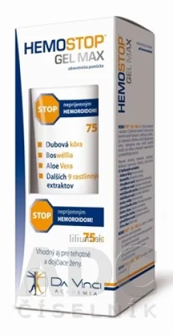 listu aloe (Aloe vera). Hemostop gél MAX je určený k aplikácii na konečník a okolie konečníka: