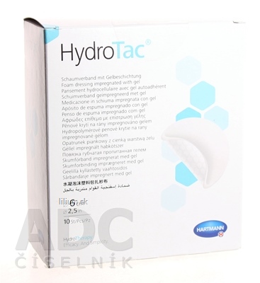 Vlastnosti a spôsob účinku: HydroTac dokáže rovnako absorbovať ranový sekrét ako aj aktívne hydratovať ranu v prípade nedostatočne vlhkého prostredia, ktoré je potrebné pre proces hojenia. Gél na strane určenej na kontakt s ranou zabraňuje prilepeniu na plochu defektu. Krytie HydroTac možno odstrániť z rany bez traumatizácie (bez poškodenia a takmer bezbolestne).