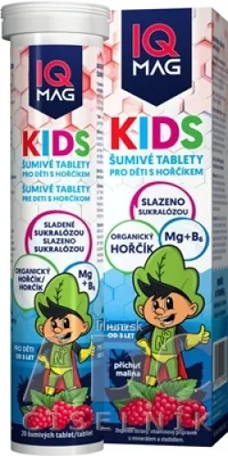 Výživový doplnok pre deti s obsahom horčíka a vitamínu B6. Šumivé tablety so sladidlom, príchuť malina.