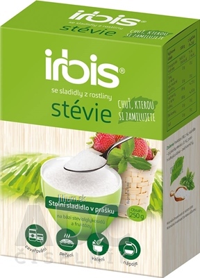 Sypké sladidlo v prášku na báze glykozidov stevialu a fruktózy. Viac na adcc.sk