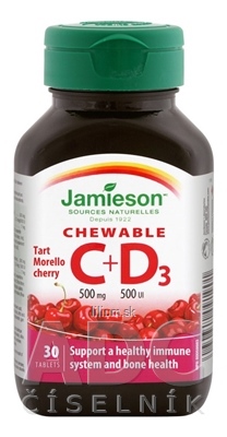 Výživový doplnok s obsahom vitamínov C a D3, vo forme tabliet na cmúľanie, s príchuťou čerešne. So sladidlom.
