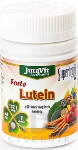 Výživový doplnok JutaVit Luteín Forte s luteínom, vitamínmi a minerálnymi látkami.