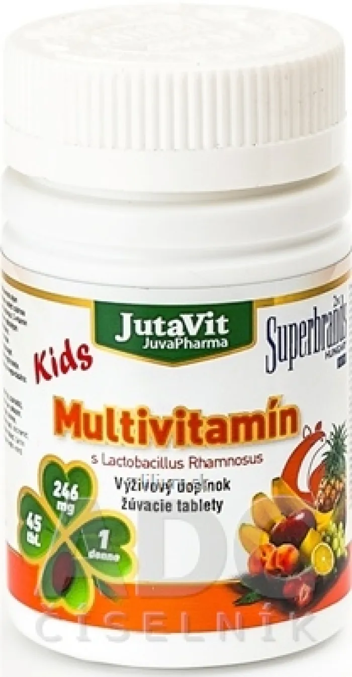 Výživový doplnok JutaVit Multivitamín s Lactobac. Rhamnosus Kids - žuvacie tablety.