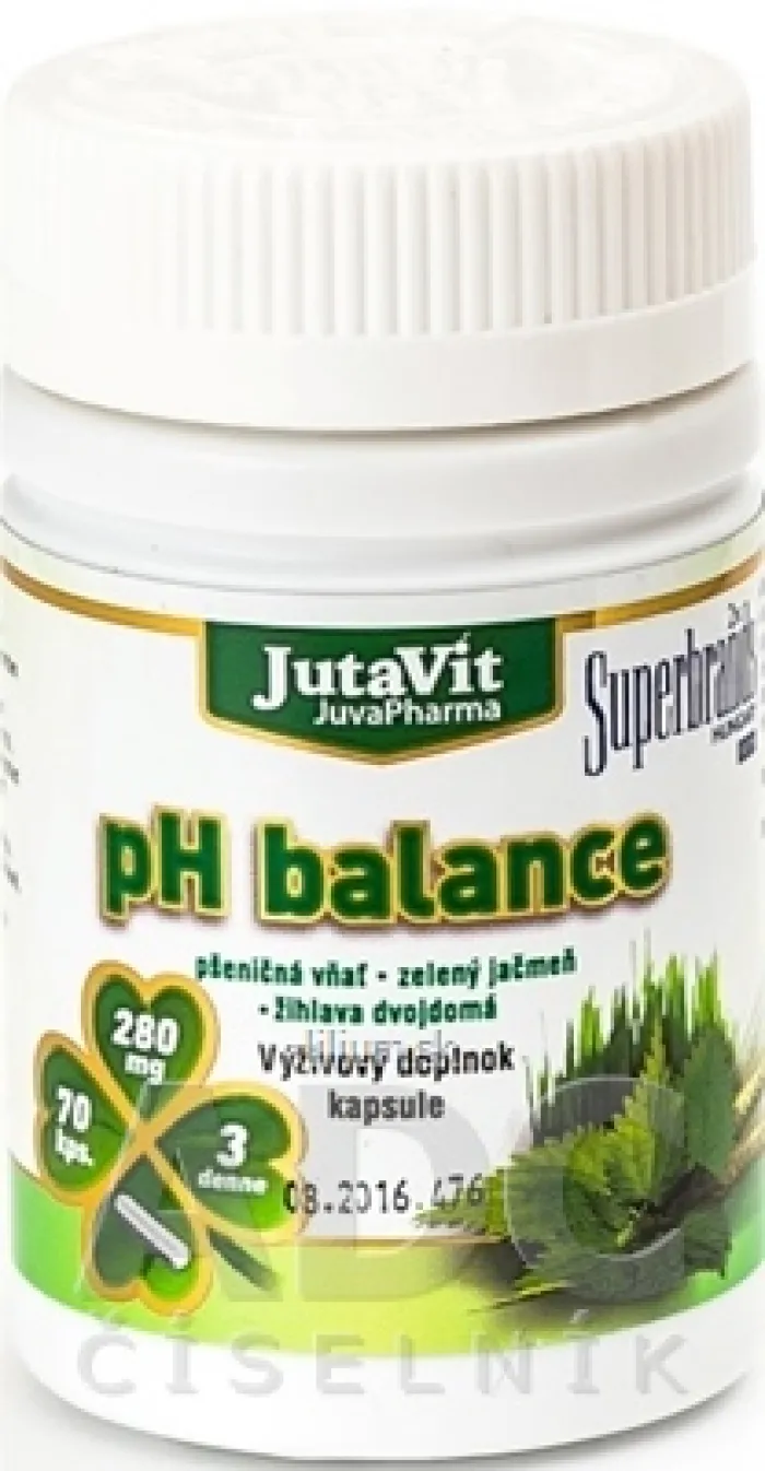 Výživový doplnok JutaVit pH balance s rastlinnými extraktmi.