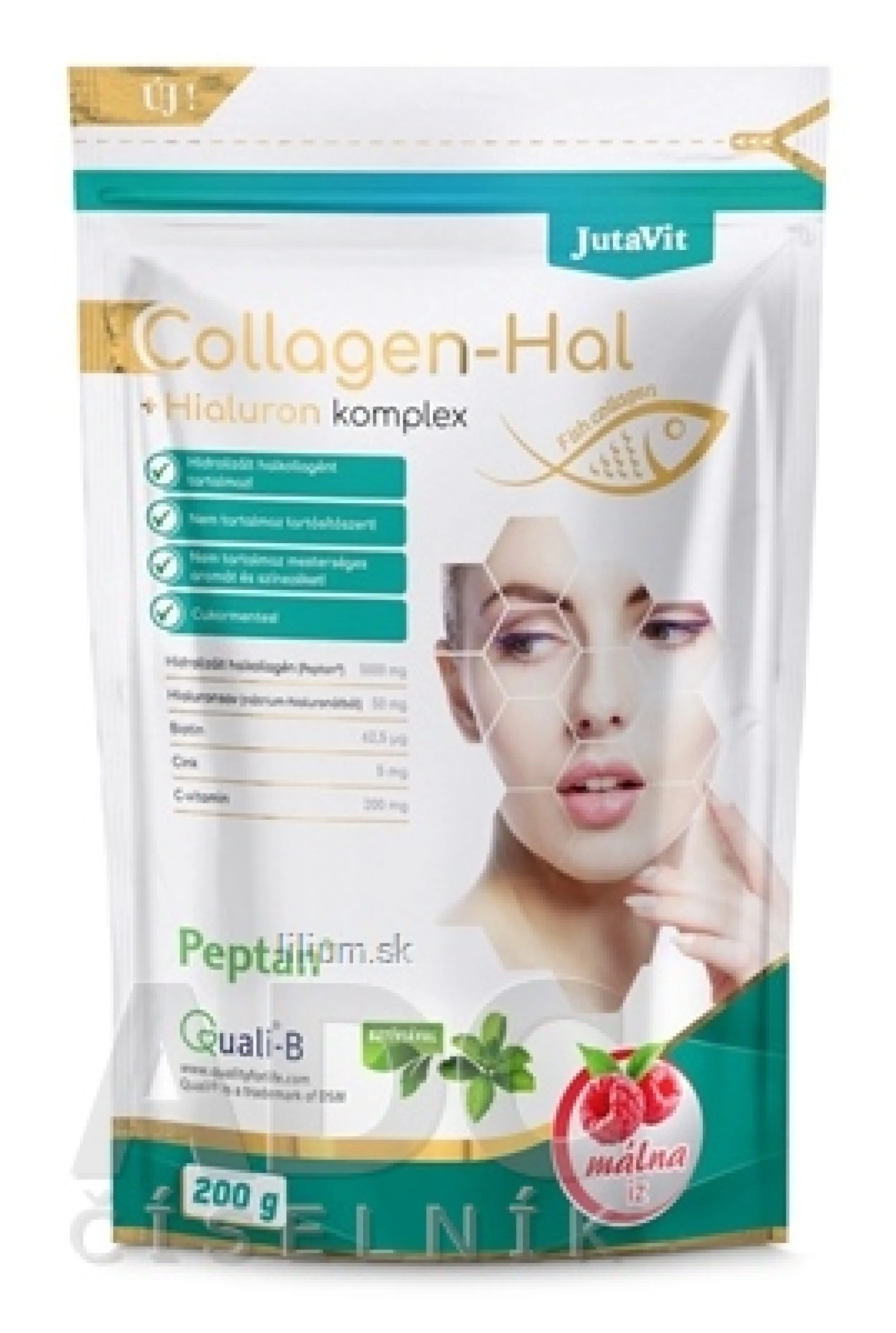 Výživový doplnok s obsahom hydrolyzovaného rybieho kolagénu, kyseliny hyalurónovej, biotínu, organického zinku a vitamínu C so sladidlami s príchuťou maliny. Neobsahuje umelé arómy a farbivá. Neobsahuje žiadne konzervačné látky. Bez cukru.