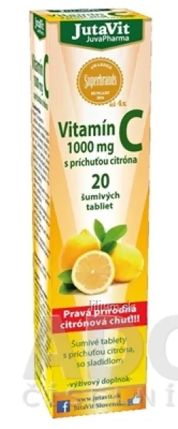 Výživový doplnok JutaVit Vitamín C 1000 mg šumivé tablety s príchuťou citróna, so sladidlom.