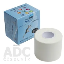 Super pevný Kine-MAX Non-Elastic Sport Tape, ktorý sa dá ľahko odtrhnúť, je vyrobený z vlákien 95% bavlny a 5% viskózy. Vďaka svojim neelastickým vlastnostiam zaručuje spoľahlivú fixáciu a podporu. Vďaka dômyselnému vrúbkovanému zastrihnutiu sa tejp pri aplikácii ľahko odtrhne a to aj bez použitia nožničiek. Špeciálny nános hypoalergénneho bezlatexového ZINK-OXID lepidla zabezpečuje nielen vysokú lepivosť, ale hlavne spoľahlivú fixáciu pri extrémnej záťaži. Viac na adcc.sk