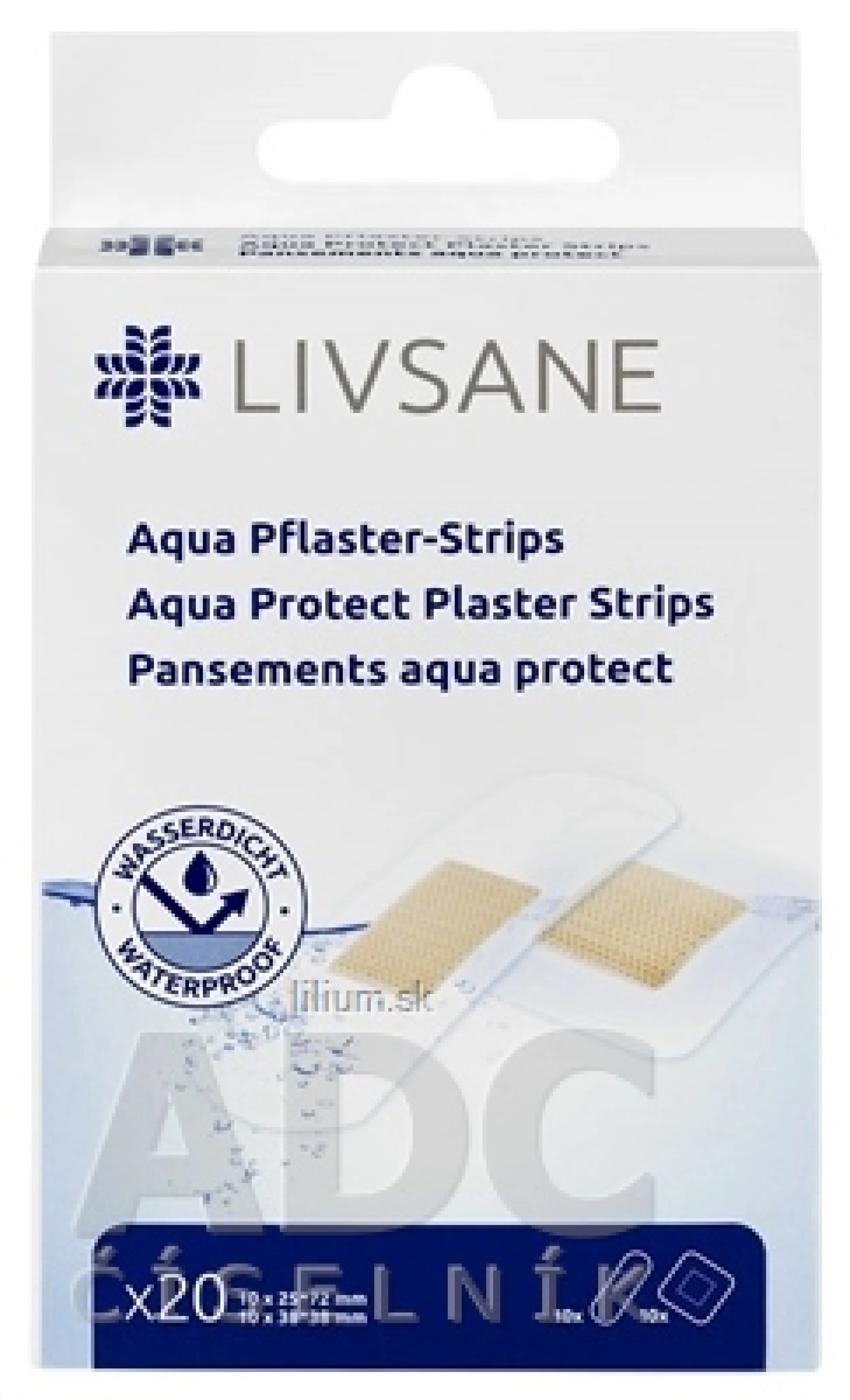 Vodeodolná náplasť prúžky: Na ošetrenie povrchových rán. Ideálne pri kúpaní, sprchovaní a plávaní.