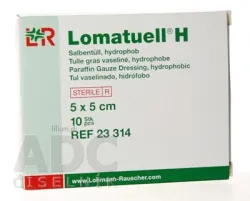 LOMATUELL H - Sieťovaný tyl hotový na použitie, impregnovaný bielou vazelínou na šetrné ošetrenie povrchových rán. Tyl s veľkými okami podporuje odvádzanie exsudátu. Biela vazelína zabraňuje zlepeniu s ranou. Tak je možná bezbolestná výmena krytia. Neutrálny podklad pre masť ponúka možnosť doplnkovej medikácie špecifickej pre danú ranu.