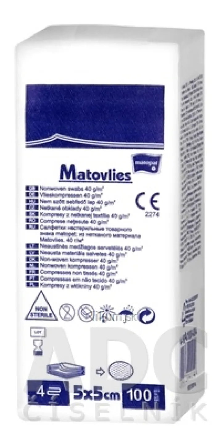 5x5 cm, nesterilné, 40g/m2, 4-vrstvové, 1x100 ks