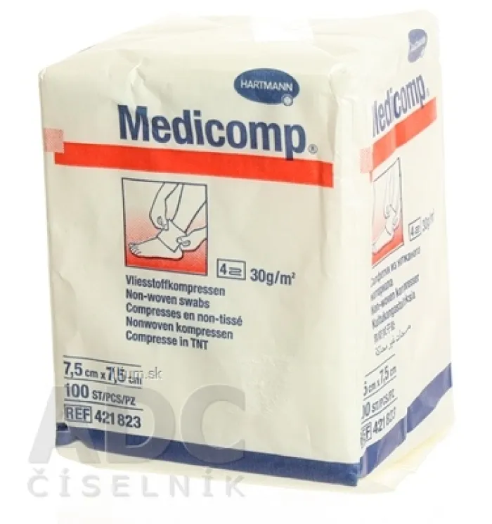 Sterilné kompresy z netkaného textilu, nasiakavé, priedušné, mäkké kompresy, sterilné (zlozenie: 60 % viskóza a 34 % polyesterové vlákna). Sterilné nasiakavé, priedušné, mäkké kompresy. Gázové kompresy sa použijú na ošetrenie alebo kratie rôznych typov rán. Viac na adcc.sk