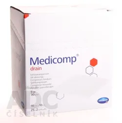 Sterilné kompresy z netkaného textilu, nasiakavé, priedušné, mäkké kompresy, sterilné (zloženie: 60 % viskóza a 34 % polyesterové vlákna).