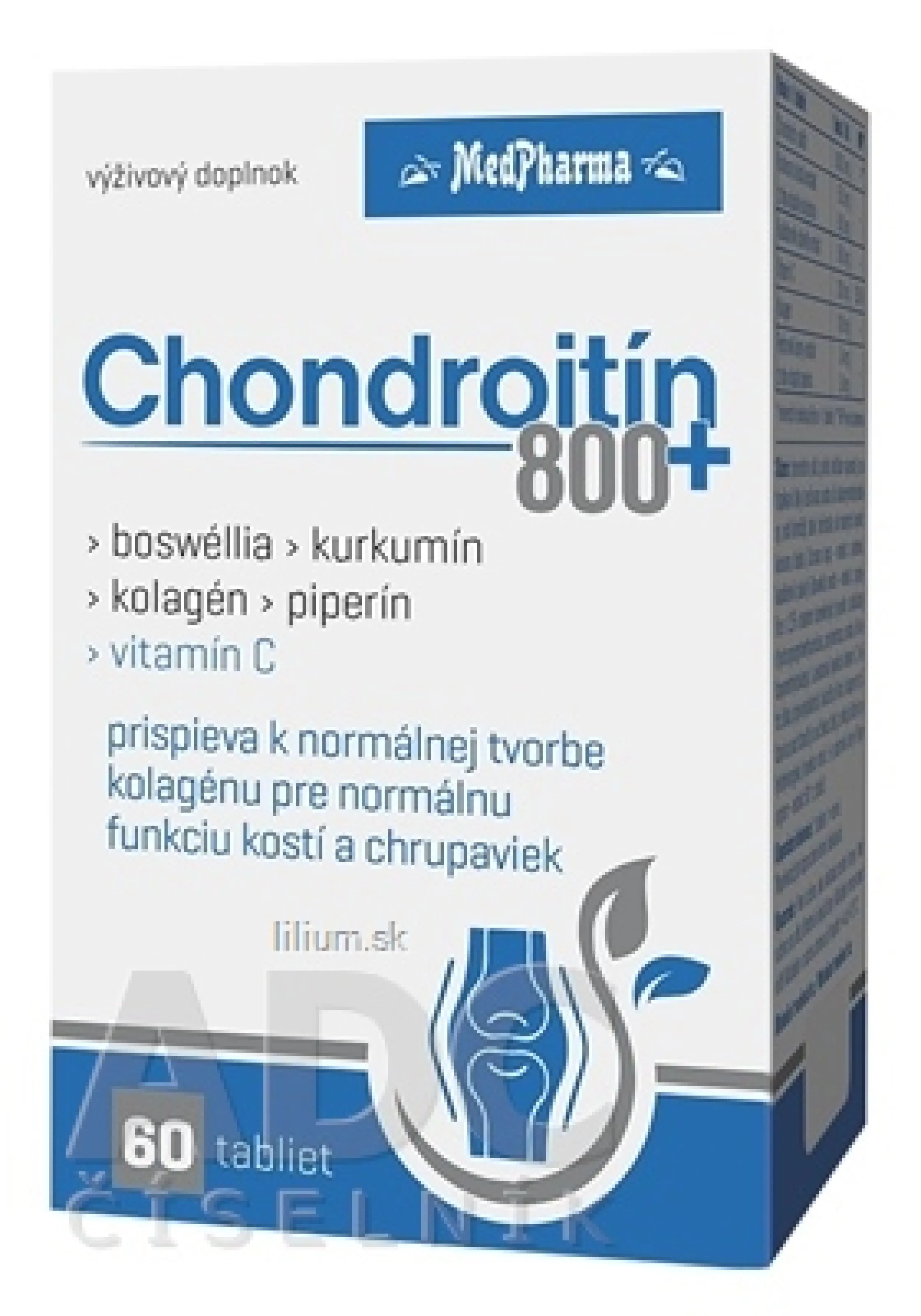 Výživový doplnok s obsahom chondroitín sulfátu (800 mg v 1 tablete), boswéllie, kurkumínu, kolagénu (10 mg v 1 tablete), piperínu a vitamínu C (20 mg v 1 tablete).