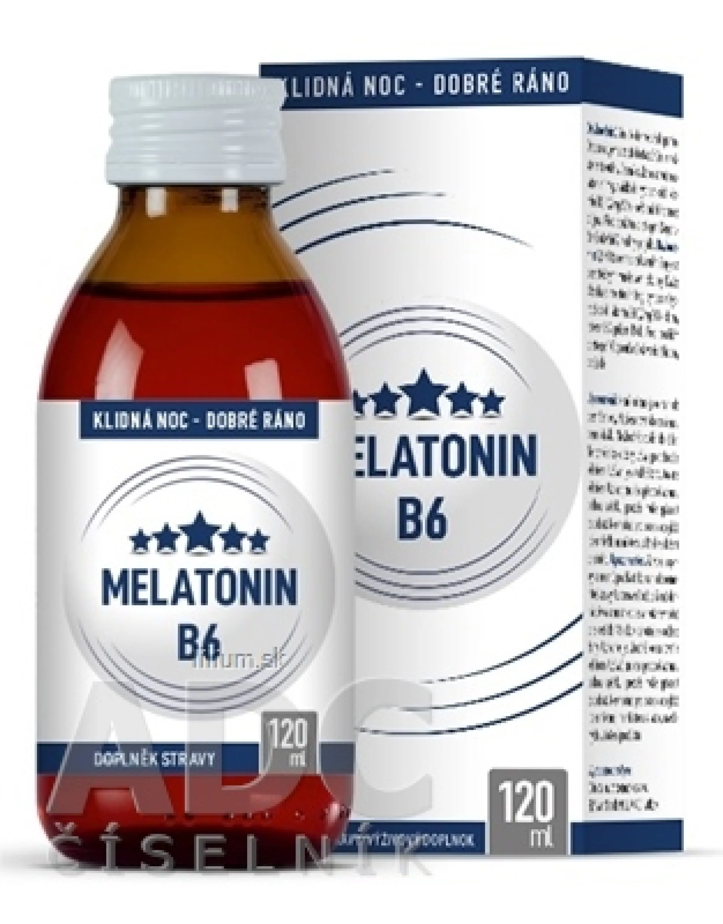 Dávka 5 ml sirupu obsahuje melatonín 1mg, pyridoxín hydrochlorid (Vitamín B6) 1,4 mg (100% - denny referenčný príjem látok). Viac na adcc.sk