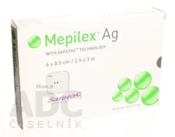 Mepilex Ag obsahuje síran strieborný, ktorý po styku s tekutinou uvoľňuje katióny striebra a vytvára tým účinnú bariéru proti baktériám a inaktivuje široký rad s ranou súvisiacich patogénov (baktérie a plesne), ako ukázali pokusy in vitro. Znížením počtu mikroorganizmov môže Mepilex Ag tiež znížiť zápach. Mepilex Ag je mäkký silikónový bakteriostatický penový obväz, navrhnutý pre manažment mierne až stredne exsudujúcich rán, ako sú vredy nôh a chodidiel, dekubitov a popálenín 2. stupňa. Mepilex Ag možno použiť na infikované rany ako jedno z komplexu opatrení, prijatých a sledovaných kvalifikovanými zdravotníckymi pracovníkmi. Mepilex Ag možno použiť pod tlakový obväz. Spôsob použitia: Mepilex Ag je vysokotvárny obväzový material, absorbujúci exsudát a udržiavajúci okolie rany vlhké. Pretože obväz Megilex Ag udržuje okolie rany vlhké, podporuje chirurgické odstránenie neživého tkaniva z rany, rana sa začiatku môže zväčšiť. Je to normálne a očakávané. Viac na adcc.sk