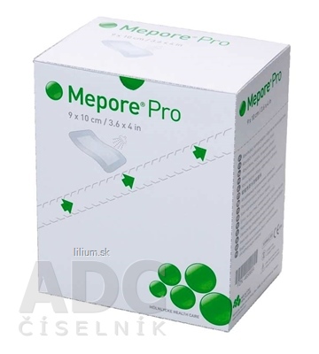 Mepore Pro je samolepivá, absorpčná a priedušná náplasť s vonkajšou filmovou vrstvou, ktorá chráni ranu pred vodou a kontamináciou. Adhezívum je priaznivé k pokožke na báze vody a bez rozpúšťadiel na jemnú a bezpečnú fixáciu.