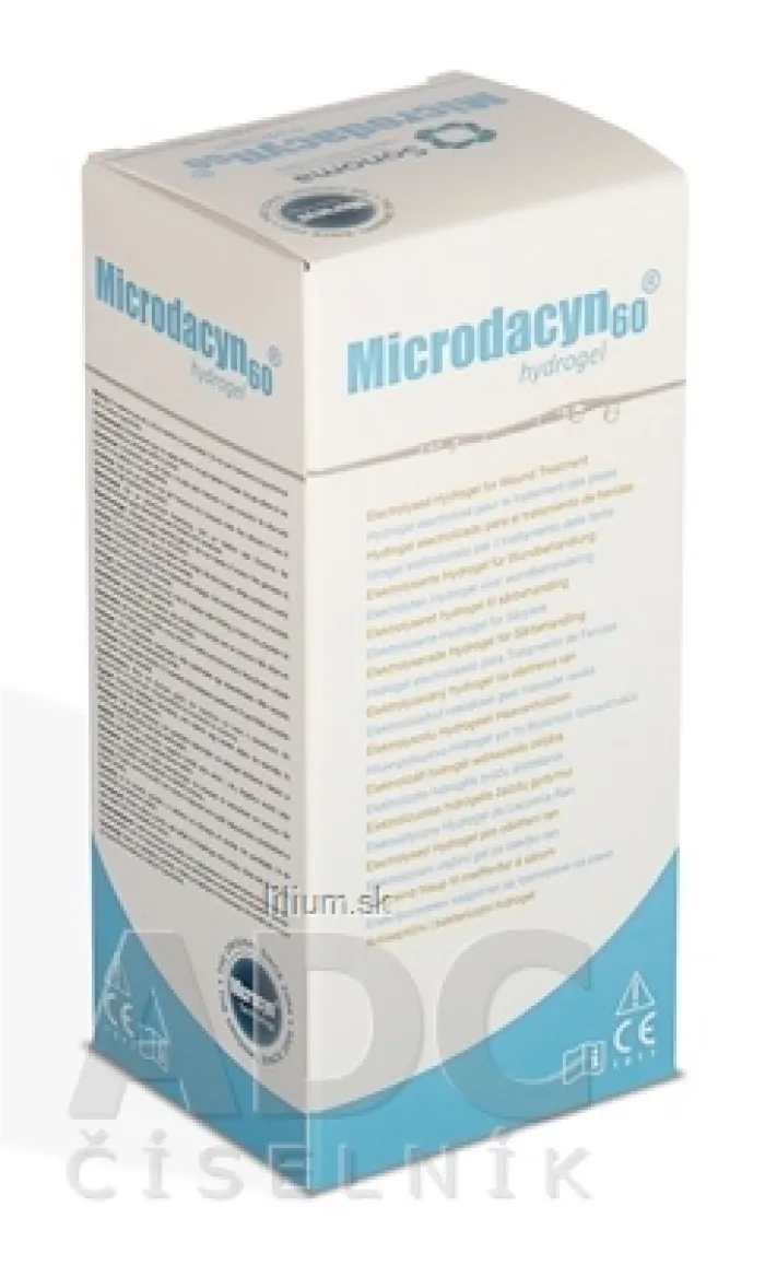 Zdravotnícka pomôcka. Microdacyn® hydrogél je superoxidovaný produkt vyrobený pomocou elektrolýzy ultračistej vody a NaCl. Denaturuje bunkovú stenu jednobunkových organizmov, čo spôsobuje, že táto stena presakuje a rozpadá sa. Štúdie tiež ukazujú, že má protizápalový a protialergický účinok, čo prospieva k rýchlejšiemu hojeniu rany. Viac na adcc.sk