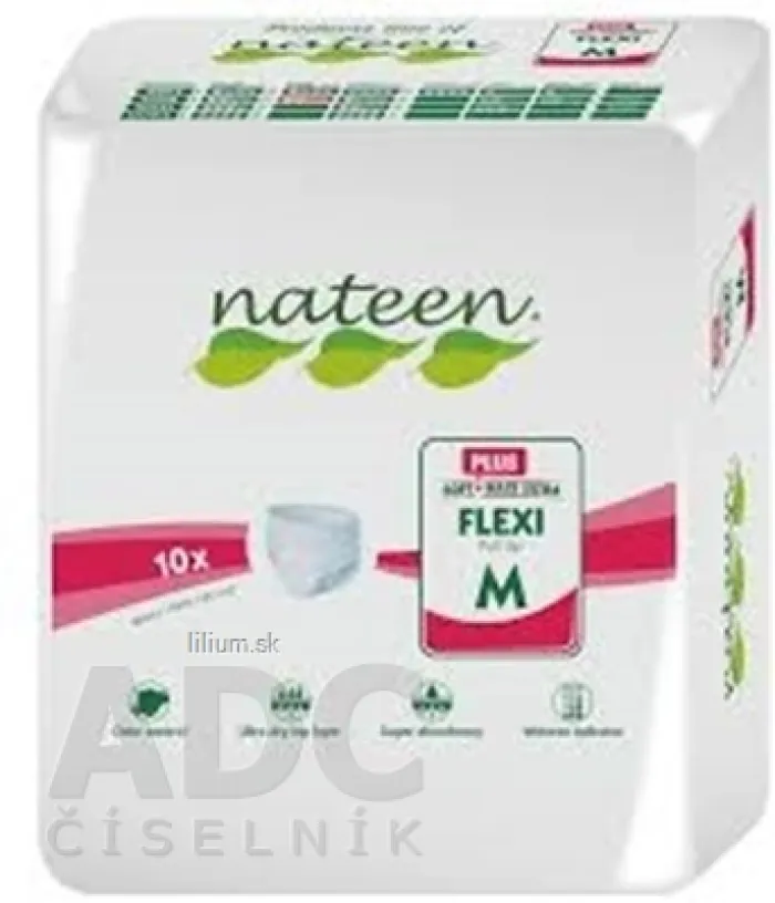 Nohavičky plienkové nateen FLEXI PLUS M sú anatomicky tvarované, vhodné na ťažkú inkontinenciu moču a stolice. Sú určené pre mobilných aj imobilných pacientov. Zabezpečujú pocit sucha, trojité absorbčné jadro zvyšuje schopnosť absorbovať tekutiny a zápach, sú priedušné, vyrobené z netkanej nealergénnej textílie. Viac na adcc.sk