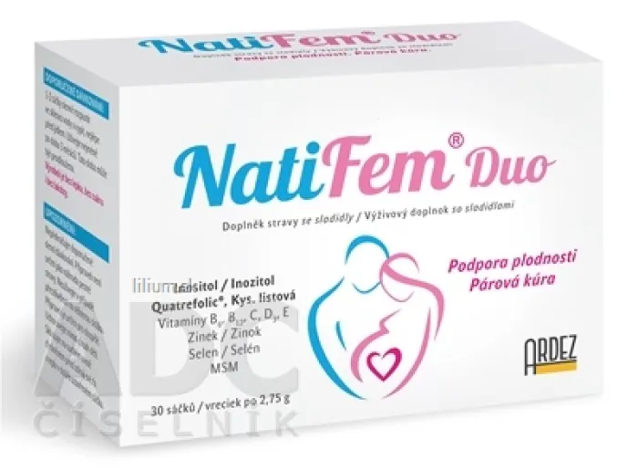 Výživový doplnok s obsahom inozitolov, kyseliny listovej aj vo forme folátu 4.generácie, vitamínov E, D3, C, B6 a B12, MSM, zinku a selénu. Vhodný ako párová kúra, pre dvojice, koré plánujú bábätko. Prípravok je vhodný aj pre páry pokúšajúce sa otehotnieť s pomocou IVF centra alebo plánujúce tehotenstvo v zrelšom veku. Viac na adcc.sk