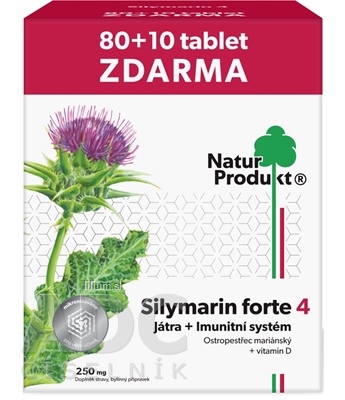 Zloženie aktívnych látok: Silymarín 250 mg, vitamín D3 10 µg (200 % RVH*).