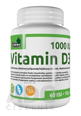 Výživový doplnok, vitamínový prípravok. Obsahuje Vitamín D3 1000 IU (cholecalciferol) 25 µg (500 % RVH),