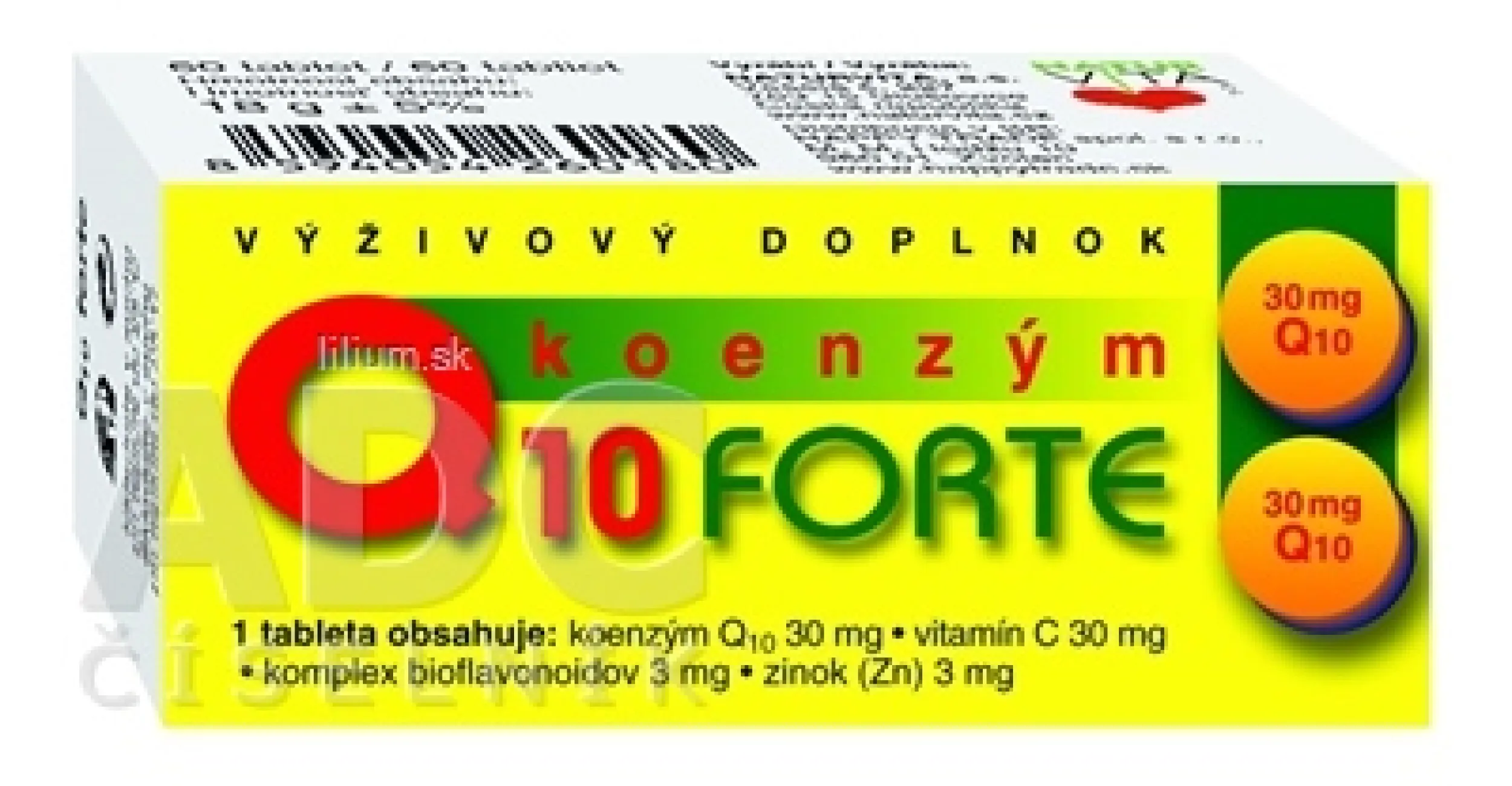 Výživový doplnok Koenzým Q10 FORTE s obsahom koenzýmu Q10, vitamínu C, komplexom bioflavonoidov a minerálom zinkom.