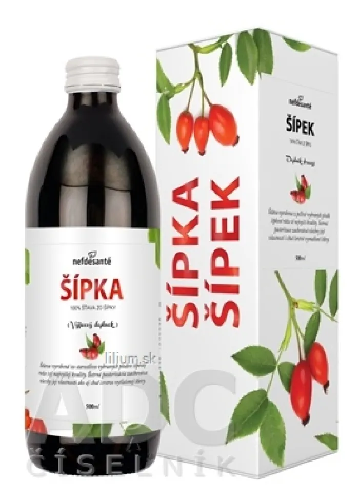 Výživový doplnok, 100 % pasterizovaná šťava vyrobená zo starostlivo vybraných plodov šípovej ruže (Rosa Canina) s prídavkom vitamínu C. 500 ml fľaša zabalené v krabičke.