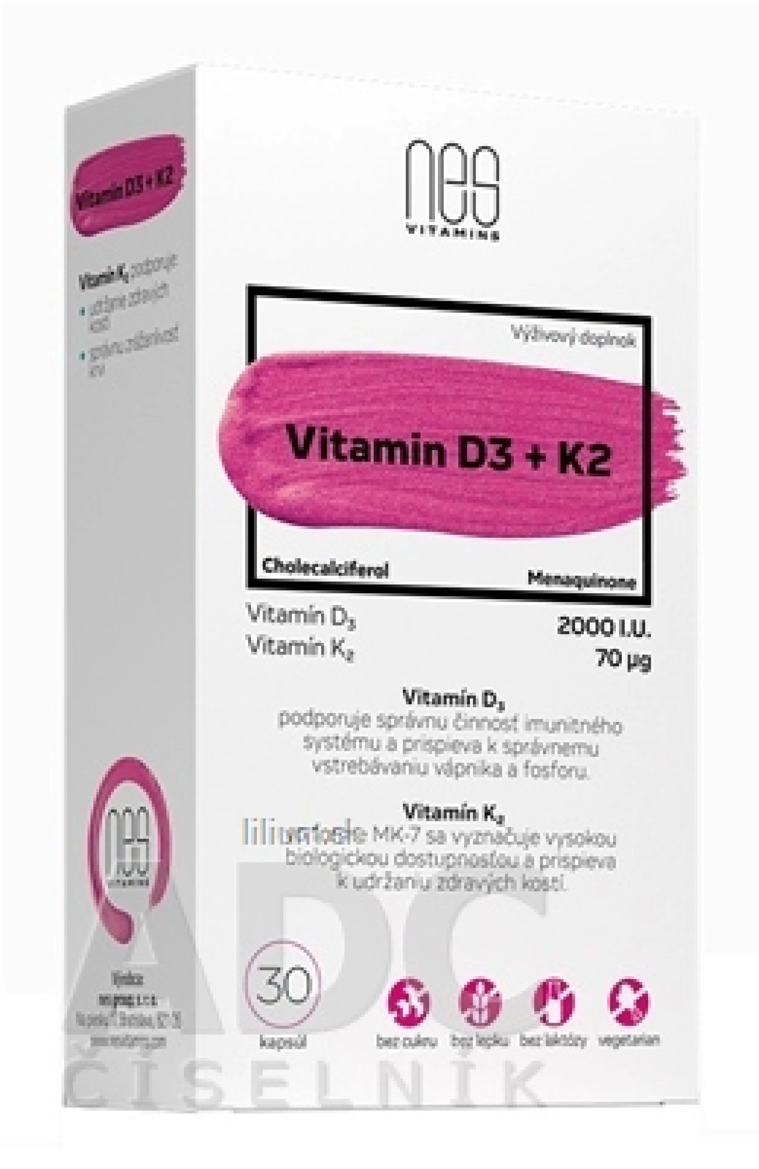 Výživový doplnok nesVITAMINS Vitamin D3 2000 I.U. + K2 70 μg je: bez cukru, bez lepku, bez laktózy, vegetarian. Viac na adcc.sk