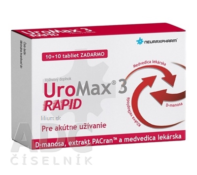 Prípravok ponúka kombináciu troch aktívnych látok pre krátkodobé akútne užívanie. Obsahuje patentovaný extrakt z kanadskej brusnice PACran™, extrakt z medvedice lekárskej a D-manosu.
