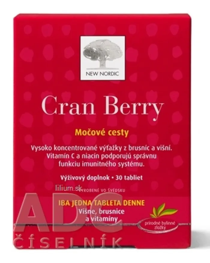 Výživový doplnok obsahujúci extrakt z 2 druhov brusníc – brusnice veľkoplodej s koncentrovaným a štandardizovaným obsahom proantokyanidínov (PAC) a brusnice obyčajnej – v kombinácii s výťažkom z višní a čierneho korenia a vitamínmi B6, C a niacínom.