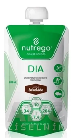 Nutrične kompletná izokalorická výživa s nízkym glykemickým indexom a rozpustnou vlákninou určená pri podvýžive alebo jej riziku u pacientov s diabetes mellitus alebo hyperglykémiou. Rozpustná vláknina podporuje správnu funkciu čriev. Nutrego DIA je možné použiť aj u pacientov s nadváhou alebo obéznych na vyrovnanie nutričného deficitu. Neobsahuje lepok ani laktózu, je teda vhodná pri laktózovej intolerancii alebo celiakii.