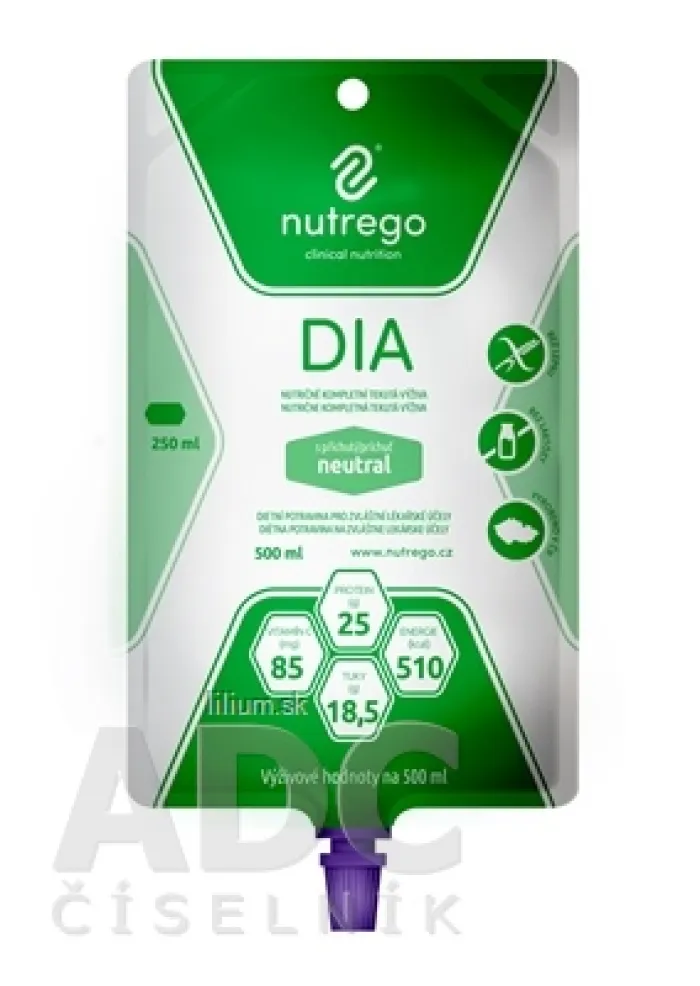 Nutrične kompletná výživa určená na podávanie enterálnou sondou na diétny postup klinickej výživy v oblasti podvýživy či pri riziku malnutrície. Pre pacientov s ochorením diabetes mellitus alebo hyperglykémiou. S nízkym glykemickým indexom, bez lepku, s vlákninou, s cukrami a sladidlami. Balené v ochrannej atmosfére a ošetrené UHT. Viac na adcc.sk