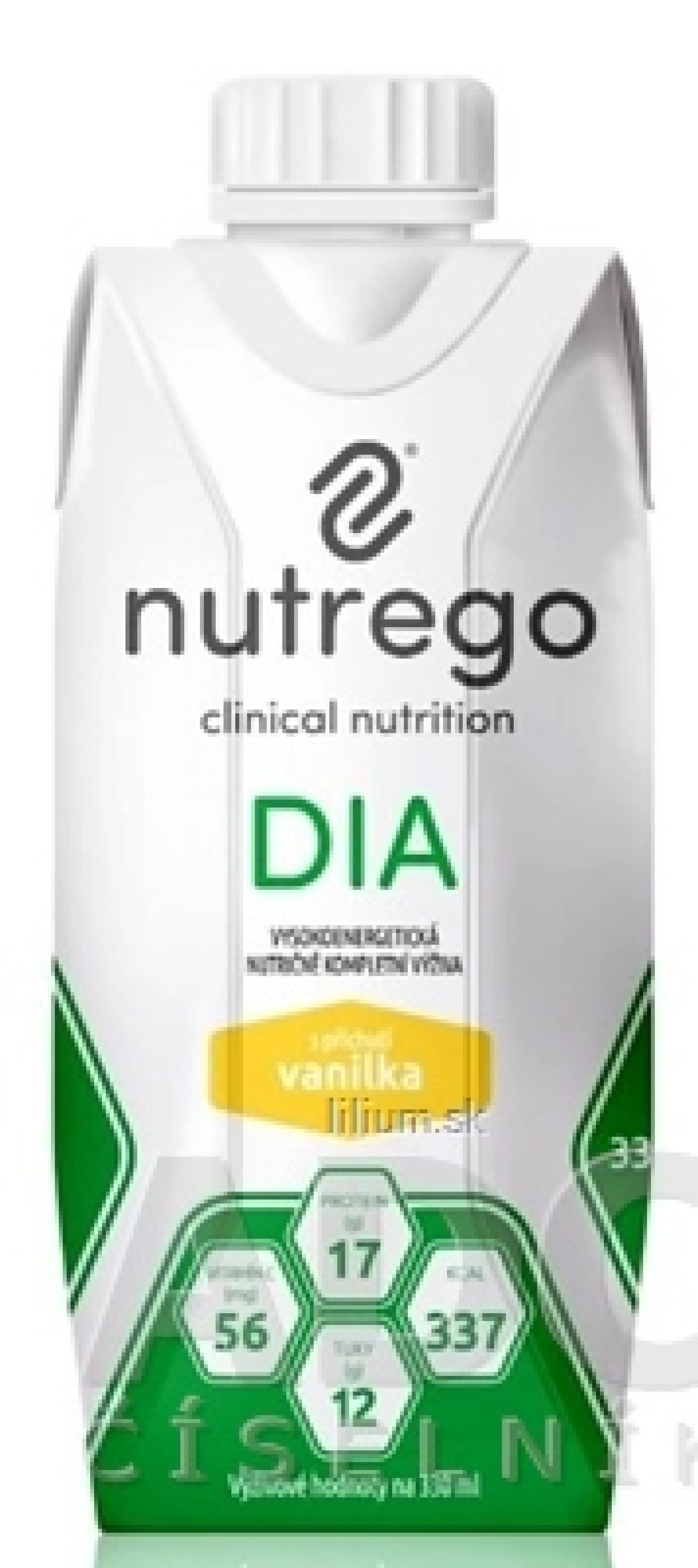 Nutrične kompletná izokalorická výživa s nízkym glykemickým indexom a rozpustnou vlákninou určená pri podvýžive alebo jej riziku u pacientov s diabetes mellitus alebo hyperglykémiou. Rozpustná vláknina podporuje správnu funkciu čriev. Nutrego DIA je možné použiť aj u pacientov s nadváhou alebo obéznych na vyrovnanie nutričného deficitu. Neobsahuje lepok ani laktózu, je teda vhodná pri laktózovej intolerancii alebo celiakii.
