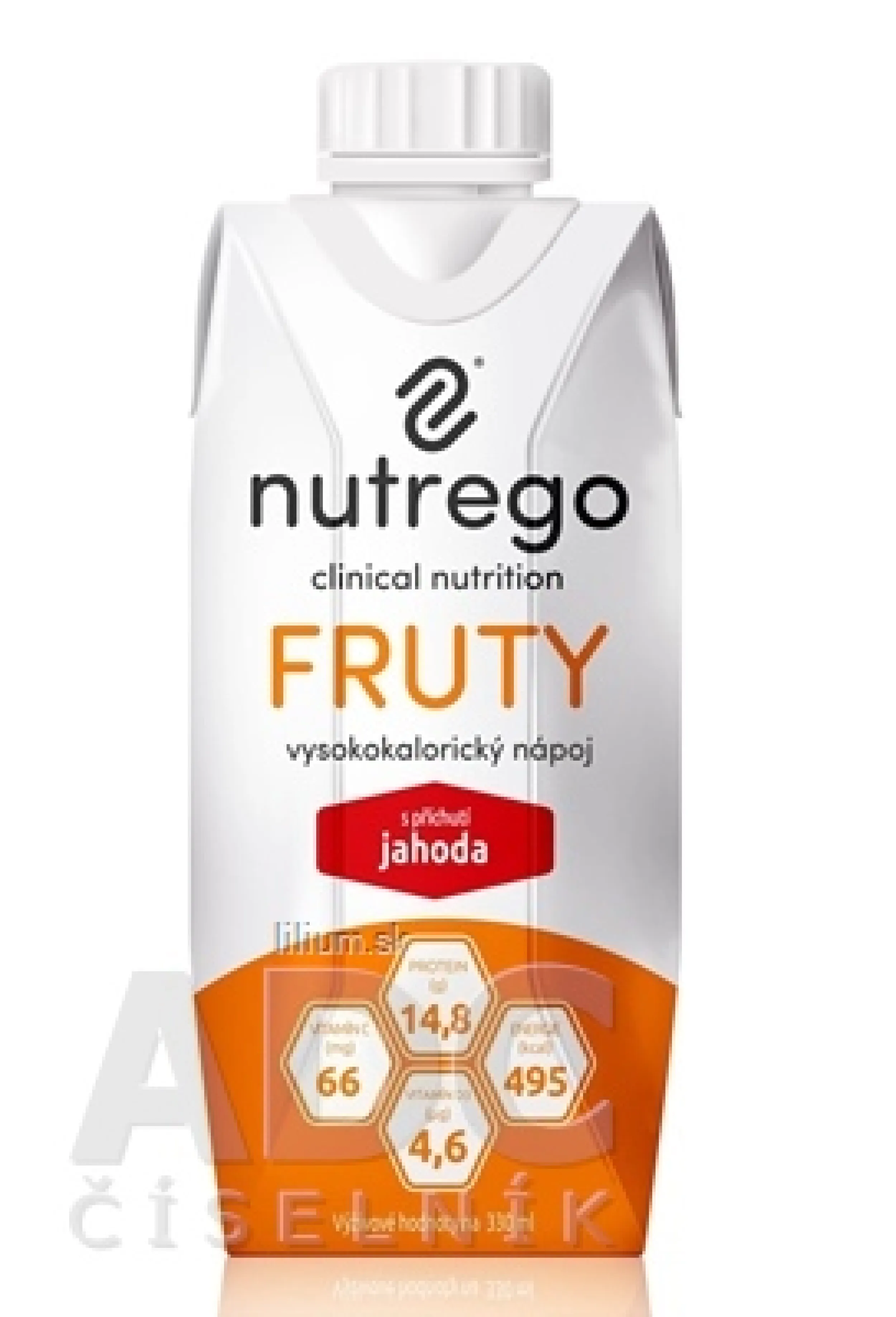 Dietetická potravina na zvláštne lekárske účely, na diétny postup pri podvýžive súvisiacej s chorobou. Vhodné pre pacientov s nízkotučnou diétou. Vysokokalorický nápoj s príchuťou jahoda. Neobsahuje vlákninu, lepok, laktózu. Neobsahuje tuk. Viac na adcc.sk