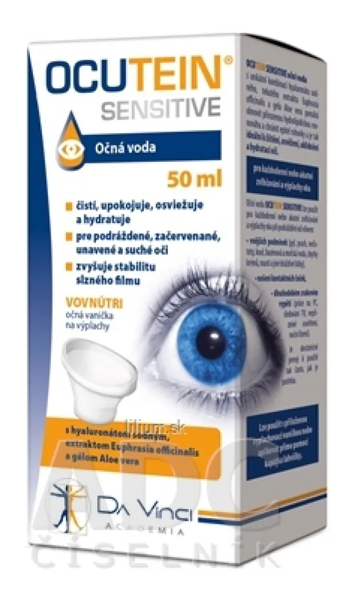 Očná voda je zdravotnícka pomôcka, kombinuje hydratačný hyaluronát sodný s upokojujúcimi prírodnými rastlinnými výťažkami Euphrasia officinalis a gélu Aloe vera.