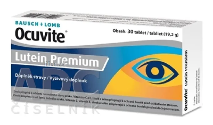 Doplnok stravy iba pre dospelých s obsahom luteínu, zeaxantínu, zinku, selénu a vitamínov C a E.