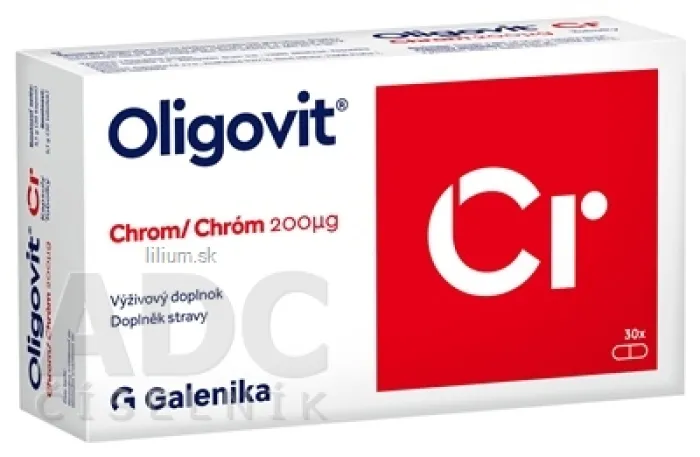 Výživový doplnok, kapsuly obsahujú dodatočný zdroj chrómu.