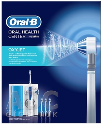 Ústna sprcha Oxyjet okysličuje vodu pomocou špeciálneho vzduchového filtra, ktorý čistí vzduch a obohacuje vodu prechádzajúcu tryskou ústnej sprchy a vytvára mikrobublinky. Na dôkladné čistenie ústnej dutiny.