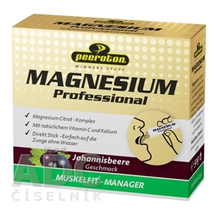 Výživový doplnok so sladidlami s obsahom magnézia. Príchuť čiernej ríbezle.