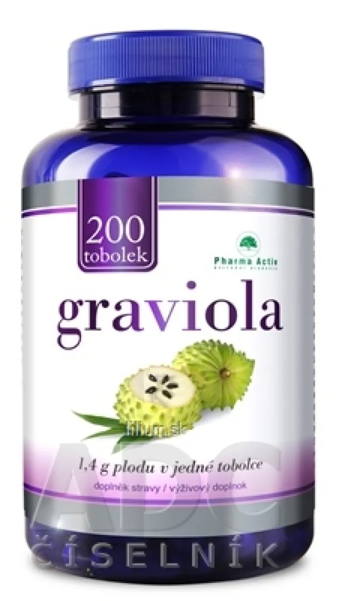 Výživový doplnok, kapsuly s obsahom extraktu Gravioly 4:1 350 mg (lat. Annona Muricata). Viac na adcc.sk