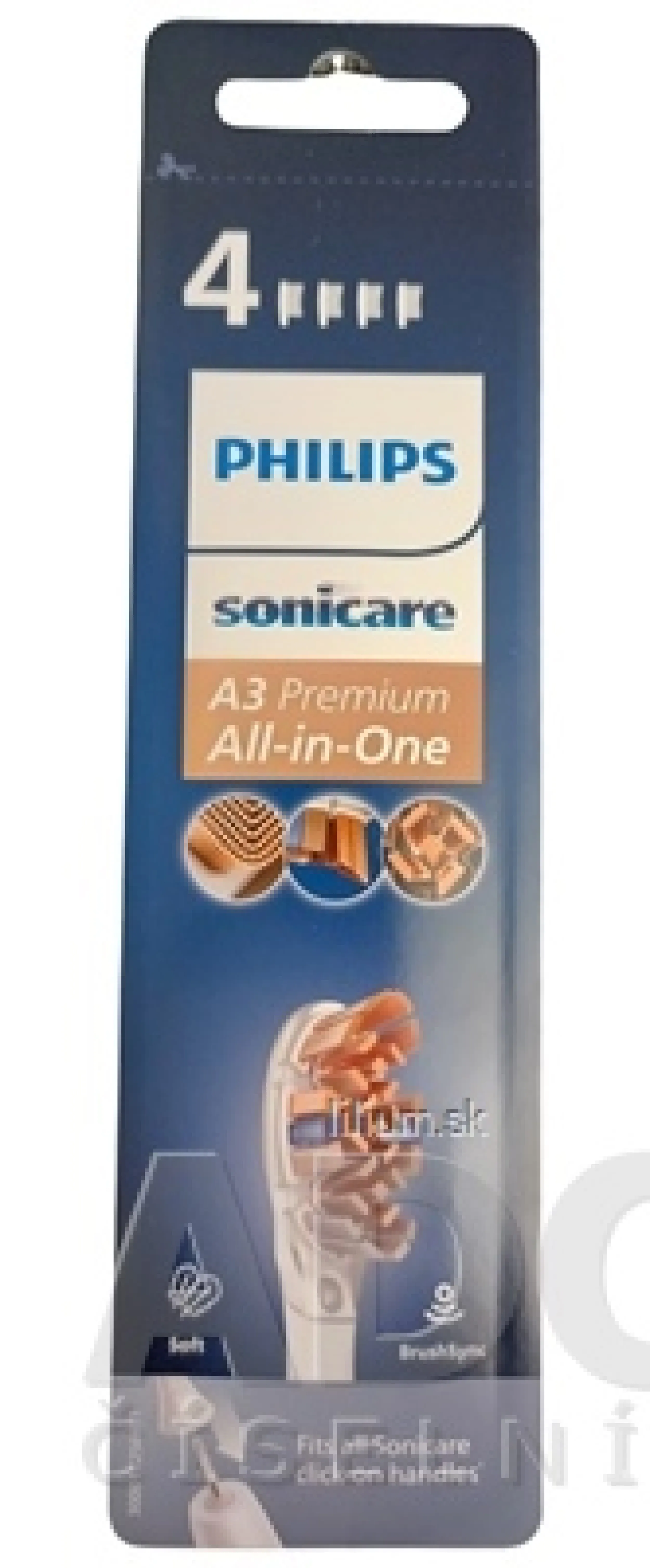 Výmenné kefkové hlavice A3 Premium All-in-One (HX9094/10). Možno ich nasadiť na telá všetkých zubných kefiek Philips Sonicare s výnimkou modelov Philips One a Essence. Na každodenné čistenie, vhodné pre odstraňovanie povlaku a nežiadúcej pigmentácie.