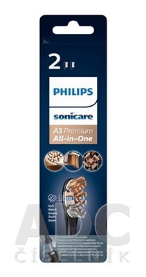 Výmenné kefkové hlavice A3 Premium All-in-One (HX9092/11). Možno ich nasadiť na telá všetkých zubných kefiek Philips Sonicare s výnimkou modelov Philips One a Essence. Na každodenné čistenie, vhodné pre odstraňovanie povlaku a nežiadúcej pigmentácie.