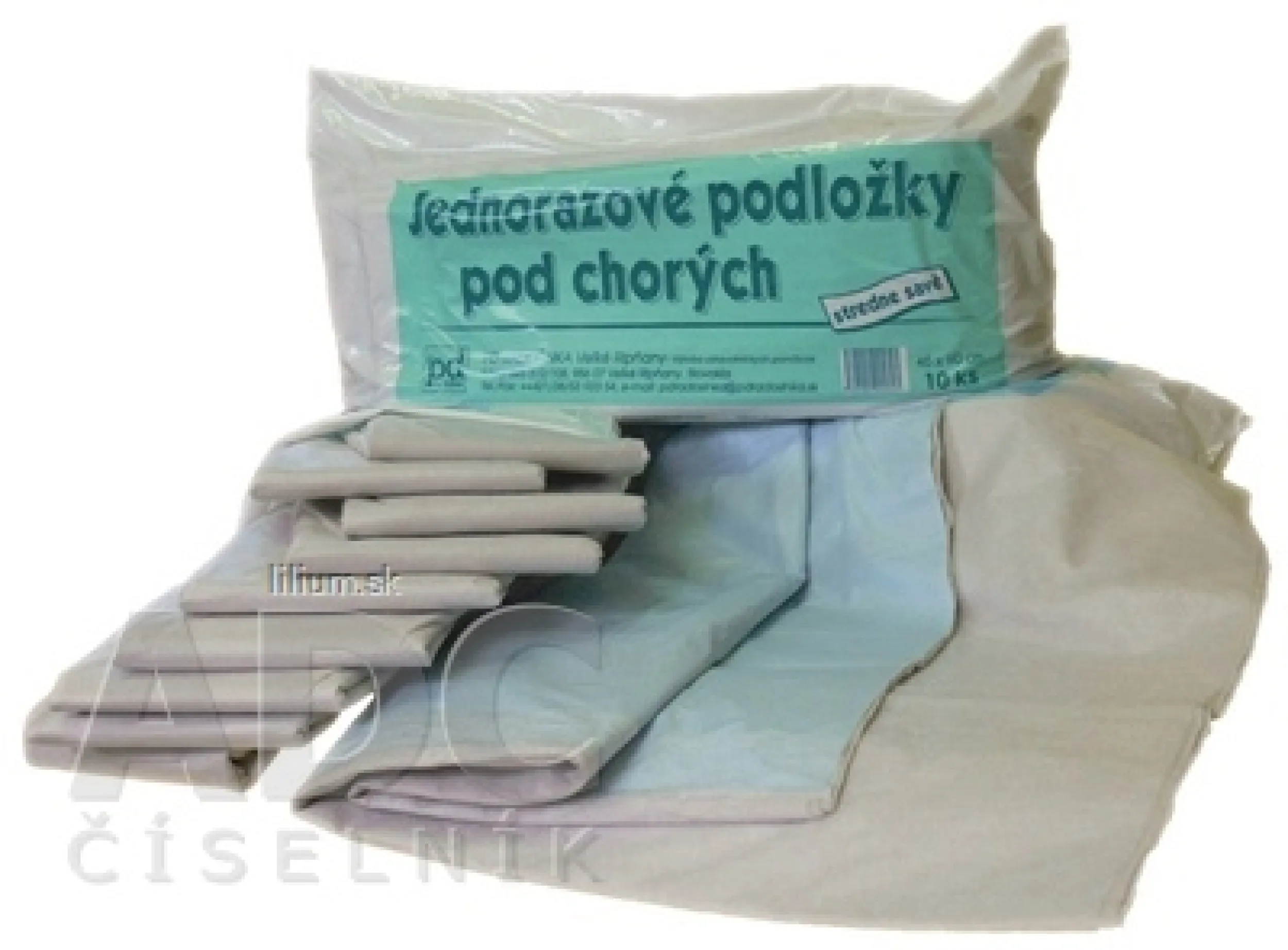 Hygienické, stredne savé podložky pod chorých. Zloženie: netkaná textília + tissue papier + LD-PE fólia. Podložka obsahuje 12 vrstiev. Hygienické podložky sa používajú: